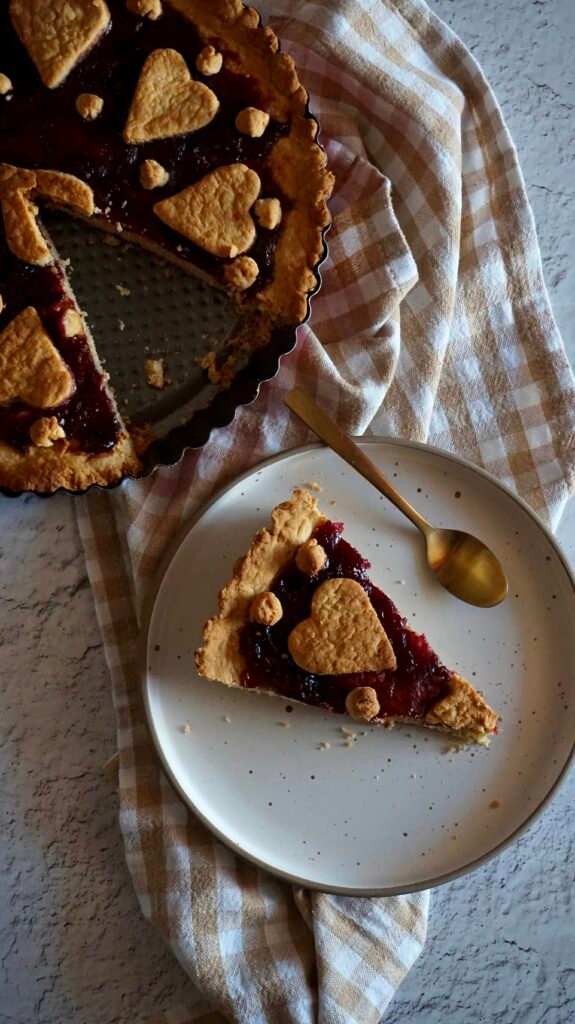 Ανακατεύουμε με το σύρμα όλα τα υλικά της βάσης εκτός από την φαρίνα. Προσθέτουμε σταδιακά το αλεύρι ζυμώνοντας με το χέρι. Αφήνουμε το 1/3 της ζύμης στην άκρη και απλώνουμε το υπόλοιπο με το χέρι σε μια ταρτιέρα. Προσθέτουμε την μαρμελάδα και με το 1/3 της ζύμης που κρατήσαμε κάνουμε μπαστουνάκια απ’ άκρη σ’ άκρη οριζόντια και κάθετα ή με κουπάτ δημιουργούμε σχήματα. Ψήνουμε σε προθερμασμένο φούρνο στον αέρα στους 180• C για 30’.