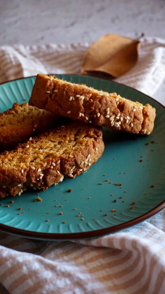 Αφήνω 10′ εκτός φούρνου, σπάω σε κομμάτια και συνεχίζω το ψήσιμο μέχρι να γίνουν τραγανά (20-30′).